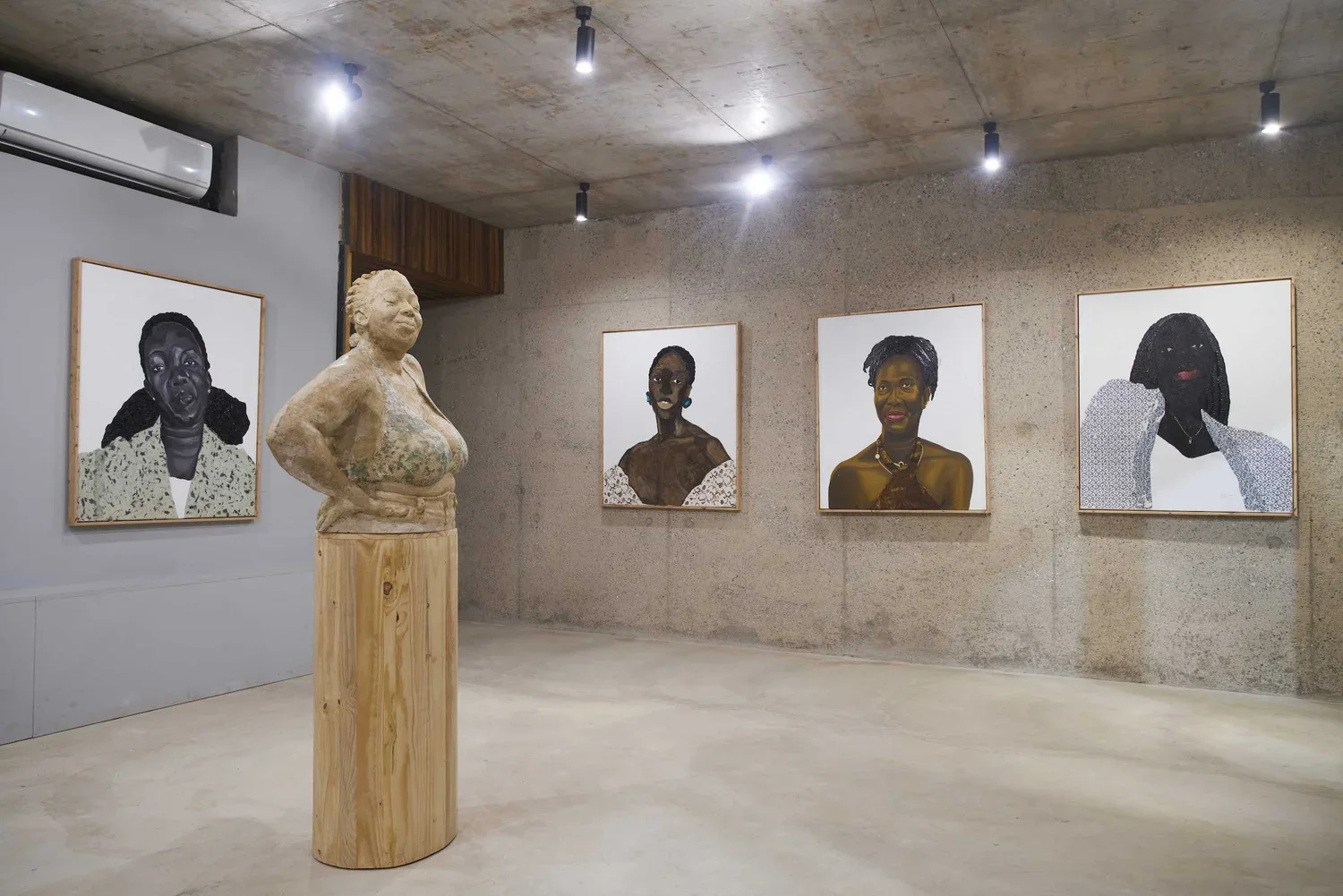 Amoako presents nine new original works with these chosen peers for the show, created through an intimate interplay and exchange of signature strokes for tactile textiles, that have been laced with stories of old, evoking joy and nostalgia. Like balanced and harmonious melodies, the duets include a life-size bust and eight mixed media portraits, using various materials from coconut sheaths to secondhand leather bags.